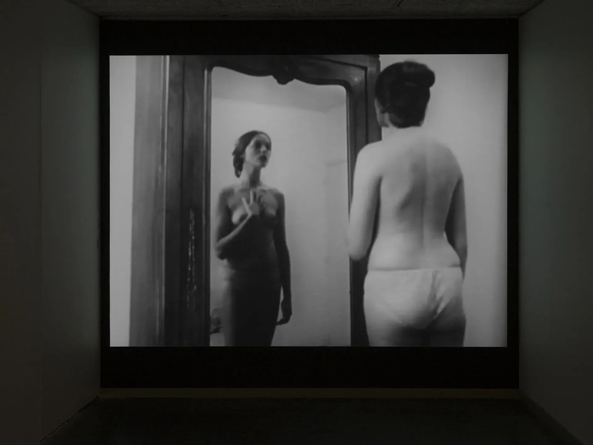 O Oi Futuro receberá quatro videoinstalações da cineasta: In the Mirror (1971-2007) exibe uma cena de um dos primeiros filmes da cineasta (L’Enfant Aimé ou Je joue à être une femme mariée, 16mm, de 1971), na qual uma jovem nua, em frente a um espelho, examina o próprio corpo detalhe por detalhe.